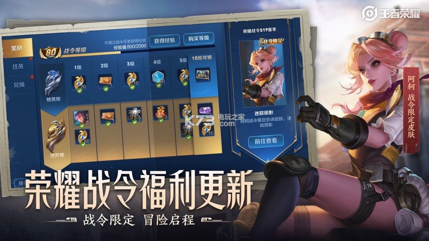 3)刘邦-夺宝奇兵:勇者品质,S19荣耀战令进阶版1级限定产出;