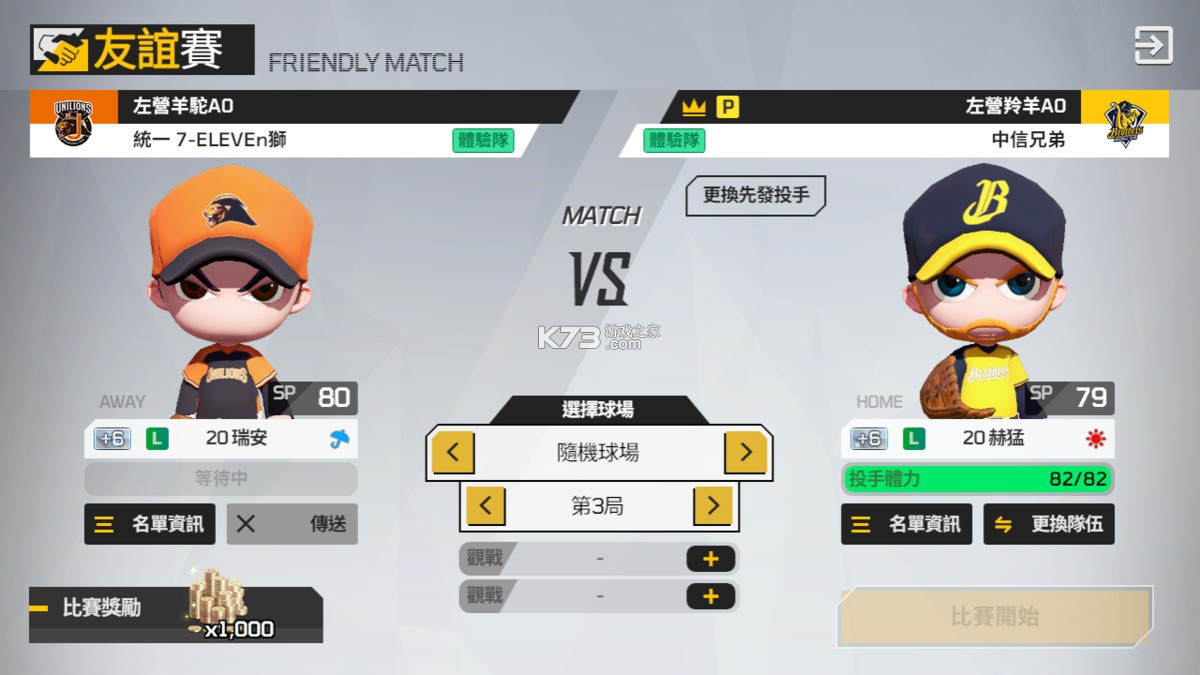 每场以3局為标準的比赛,轻松享受挥棒乐趣~