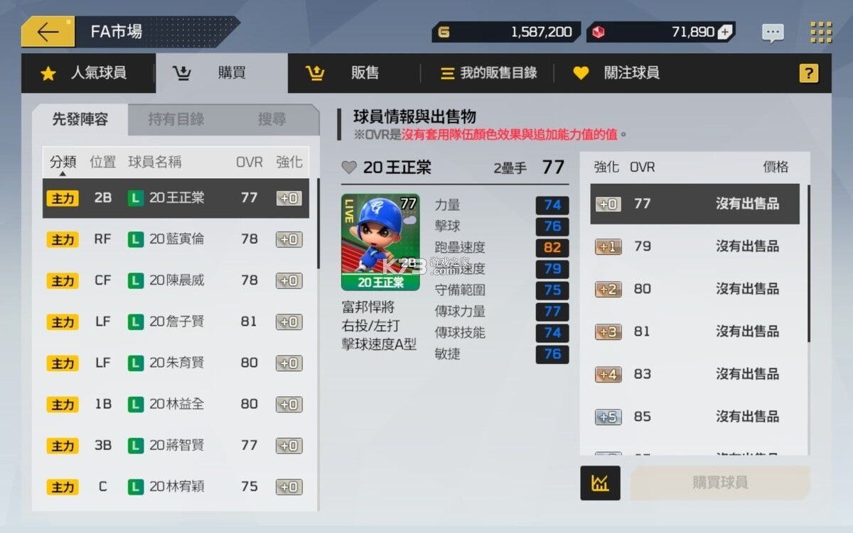 此外,玩家也可在游戏中的「FA 市场」,自由购买和贩售球员,获取想要的球员,组成专属梦幻球队。在 FA 市场中,玩家能透过内建的便捷搜寻、市价追踪、快速上架等功能,来完成各种交易。