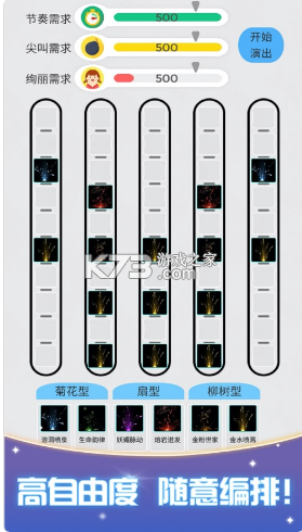 展现聪明才智来设计烟花,编排烟花,并通过烟花表演秀来满足不同顾客的需求,赚取金钱。