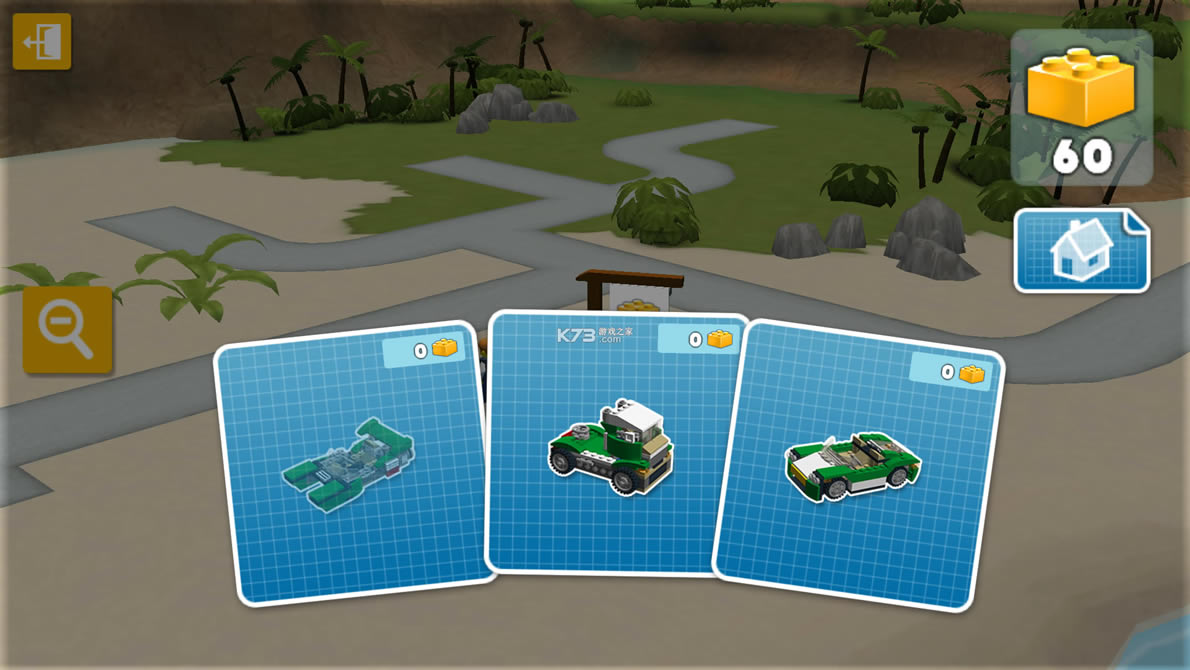 在岛屿拼砌基板上创造各式各样的车辆、生物和房屋。