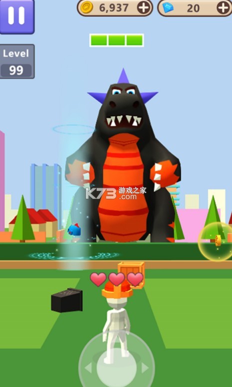 注意,在与怪兽决战的同时,你要及时躲避怪兽砸来的车辆,不要被砸到哦!