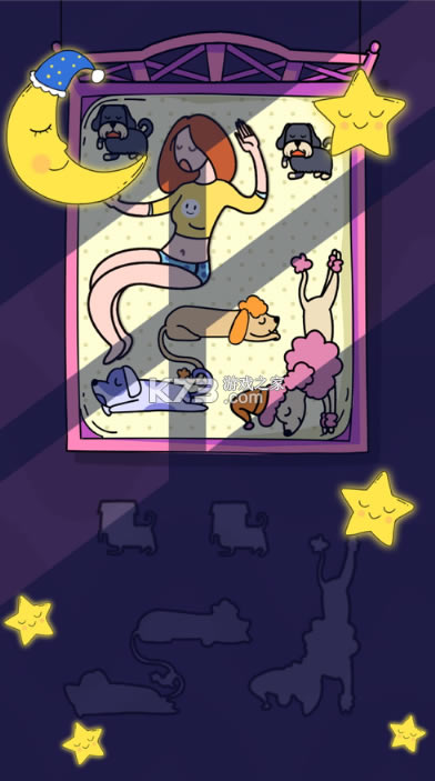随着游戏关卡解锁程度的加深,各种形状的狗在床下自由入睡,图片十分有趣;