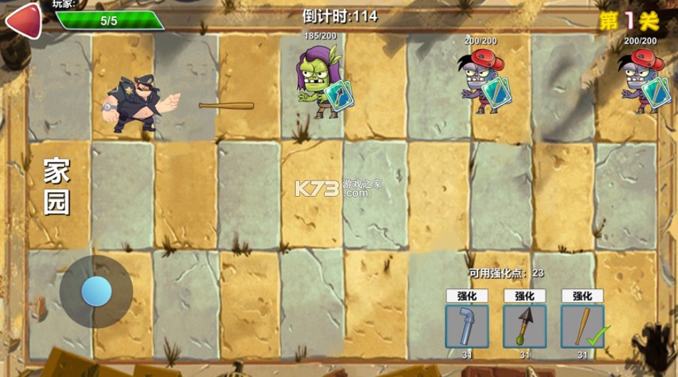 7、如果丧尸没有被消灭,移动至最左侧的家园。那么左上角玩家血量减少。
