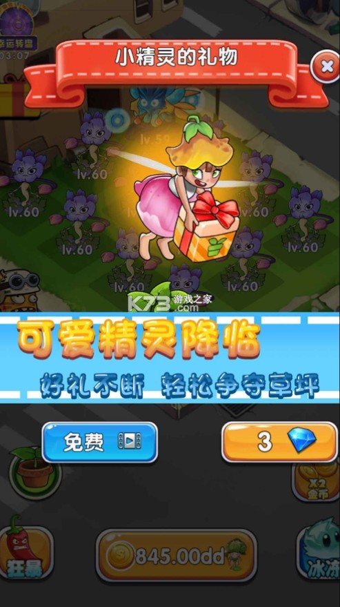采用清新简约的动画卡通画风进行设计,经典策略塔防放置元素的融合让你可以以轻松的状态去感受超级充实的游戏过程,多种玩法你将通过挑战去了解每一种植物的不同属性,非常休闲的游戏模式赶紧来体验吧!