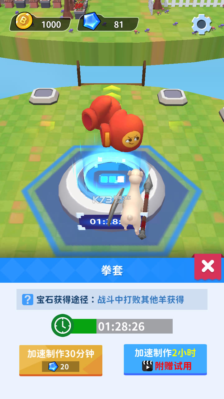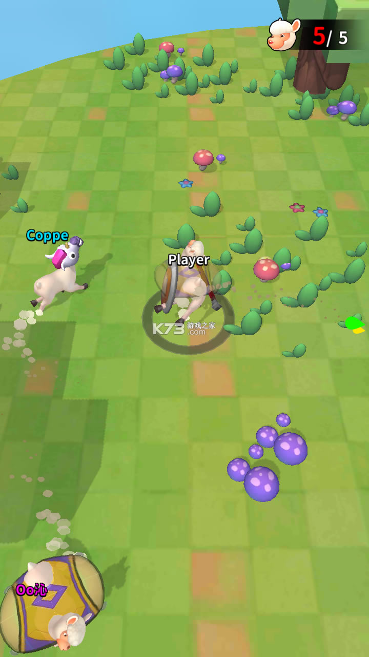 【战斗玩法】操控羊颠颠,在悬空的场地上将其他疯羊打下悬崖去,让自己存活到最后。