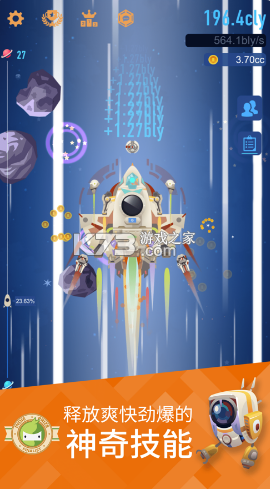 在探索美丽宇宙的过程中,你会从一个星际小白成长为星际探险家,经过各种奇特的星球,会邂逅各种可爱的外星人;如果发现适宜居住的星球,可别忘了你的伟大使命,记得返回地球,带给人类希望,移民一些人类。 为了探索的更远,你要不断安装部件,升级你的飞船,建造建筑,甚至不要忘了利用“时空隧道”——黑洞来快速穿梭于宇宙中;难道不想成为拯救世界的超级英雄吗?快来和全球玩家一起开启星际探险之旅,拯救人类吧!