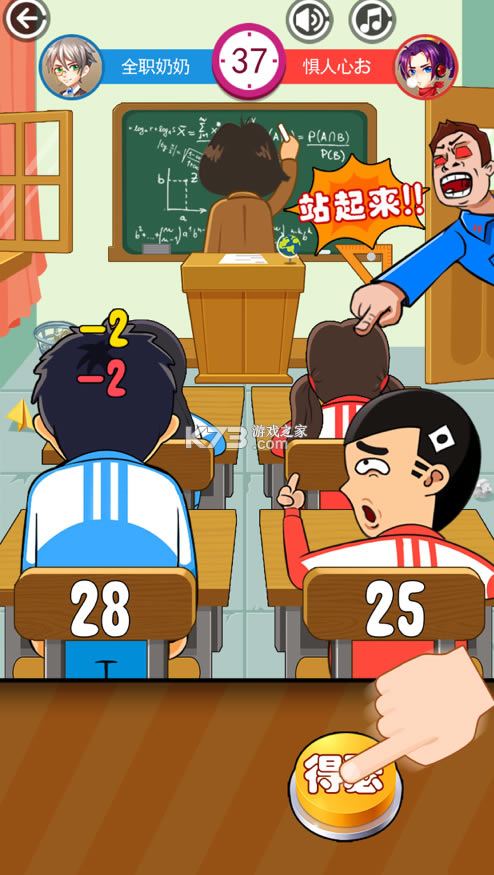 玩法一目了然,和同桌之间的课堂对战。游戏中将扮演一名学生,在老师的课堂上与同桌打闹,谁打得多,谁分就多。总的来说这就是款休闲游戏,既可以锻炼手速,又可以考验反应能力。