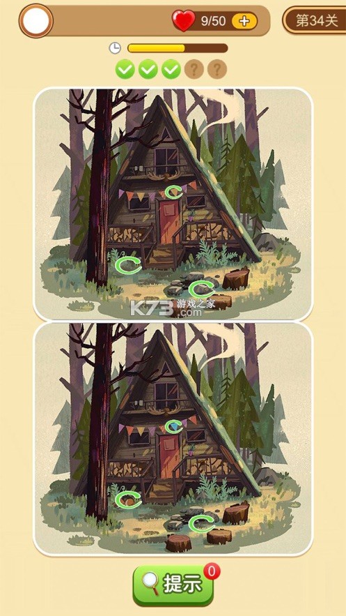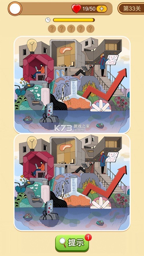 3、看似都一样的图形有着微小的差别,仔细寻找出每个关卡中的5个不同之处。