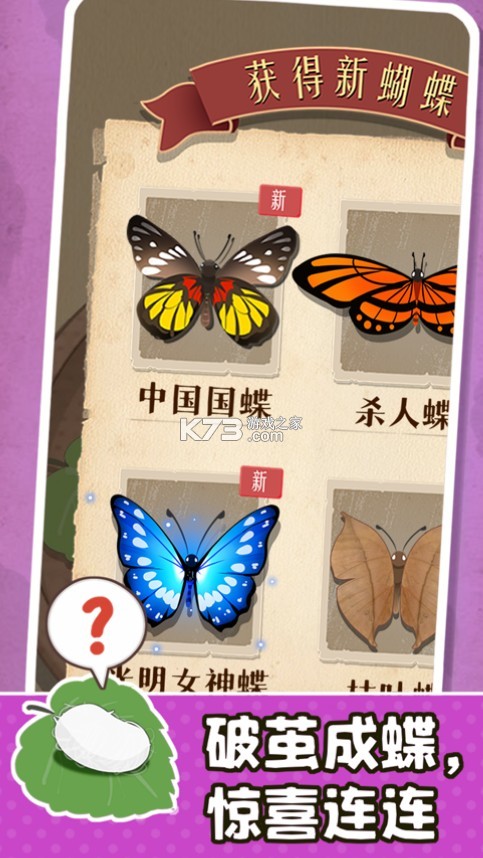 点击充斥惊喜!幺蛾子、枯叶蝶、月光闪蝶打开蚕茧,看看哪只会属于你。