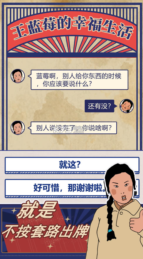 王蓝莓的幸福生活是一款超魔性的休闲游戏,在这款游戏中你将扮演主角王蓝莓,穿越回90年代。了解爸妈年轻时代的生活,通过游戏剧情来体味生活中的酸甜苦辣吧!