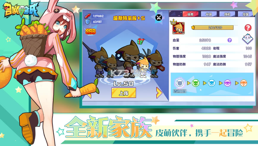 怪物家族可以升级学技能升技能,养成获得主角经验