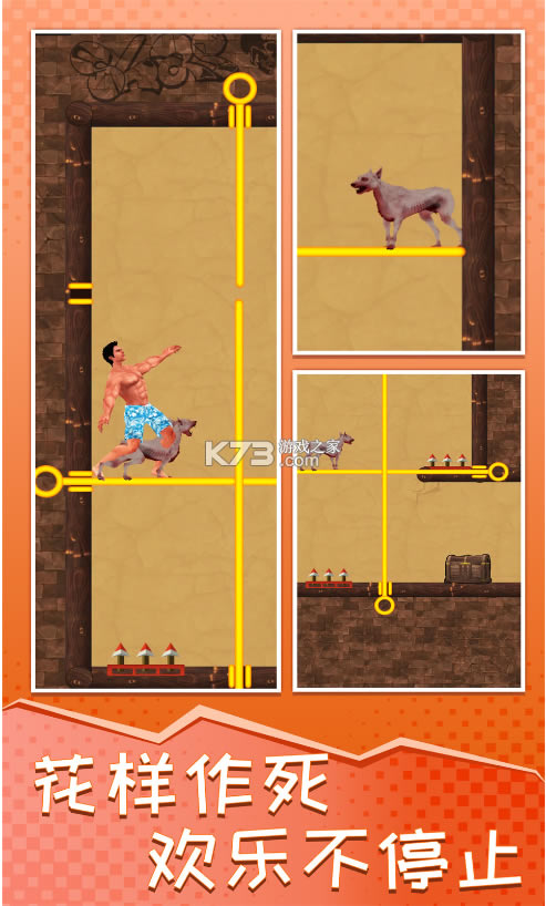 这里机会与危险并存,在这里你会获得财富、同伴,当然也会遇到徘徊在地穴里的怪物以及各种启动中的陷阱,万幸的是这里还有可以利用的地形,通过移动插销改变地形,解决的所有难题。赶快开动你的大脑,进行生存闯关吧!