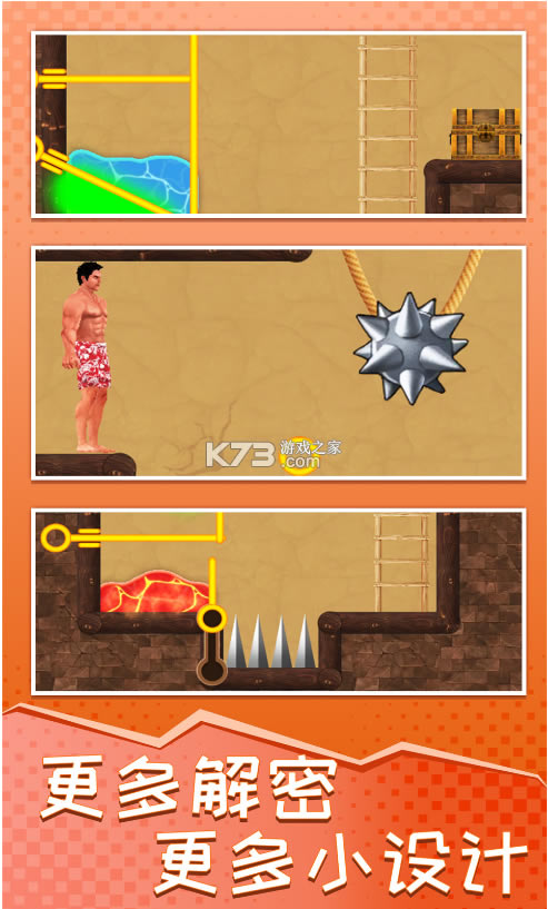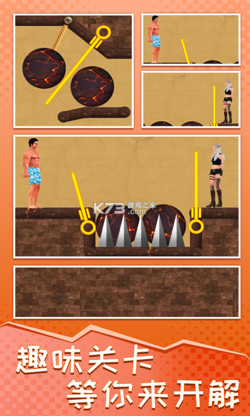 极强的关卡设计,让我们彻底释放自己大脑的思维,灵活运用自己的头脑来拉环逃生,从而获得解救
