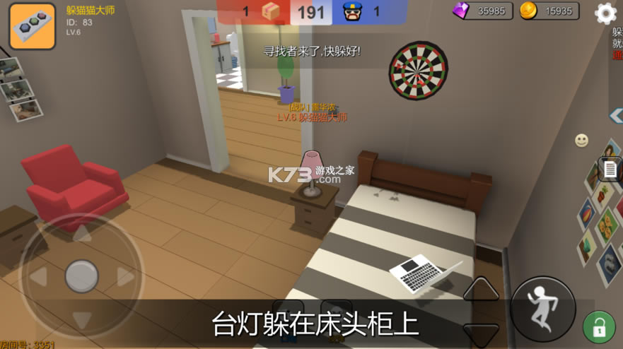 游戏玩家务必在二百妙寻找全部躲藏者,一样躲藏者躲好二百秒取得胜利。
