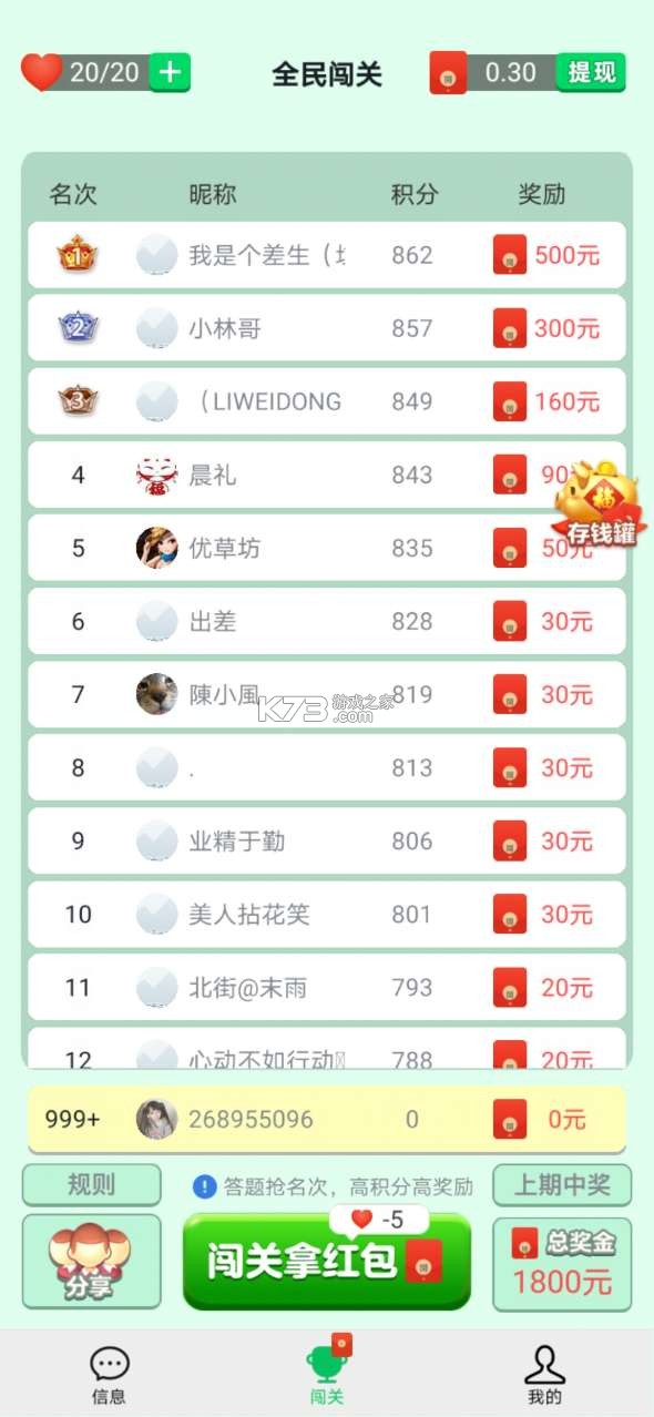 手游也有着全民的闯关的玩法了,可以随时来加入全民闯关赢取更多的红包。
