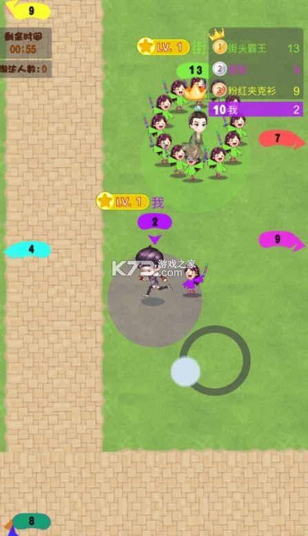 一款非常有意思的战斗对抗游戏,选择自己喜欢的偶像,并且不断的吸引更多的粉丝,你的对手也会拥有很多粉丝,在遭遇对手的时候,粉丝的数量会相互消耗,没有粉丝,你将失去当偶像的资格,所以尽快提升自己的粉丝数量吧。