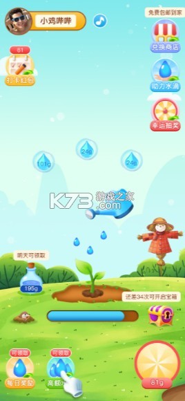 3、一根手指头就可以玩耍,而且每天连续签到就会有额外水滴奖励,玩起来就是这么的简单有趣。