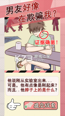 情侣的秘密是一款非常不错的二次元两性推理恋爱游戏,甜蜜的爱情往往会伴随着不为人知的伤痛,这里有不同情况下的情侣,一些小的细节,一些相处的日常可以看出问题所在,是不是渣男,是否出轨,根据细节找出证据,喜欢的玩家可以下载游戏挑战!