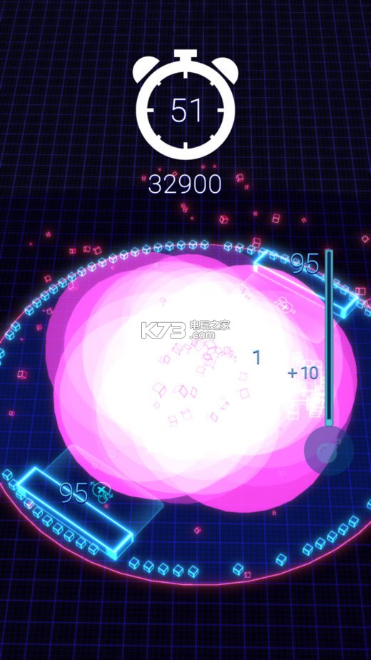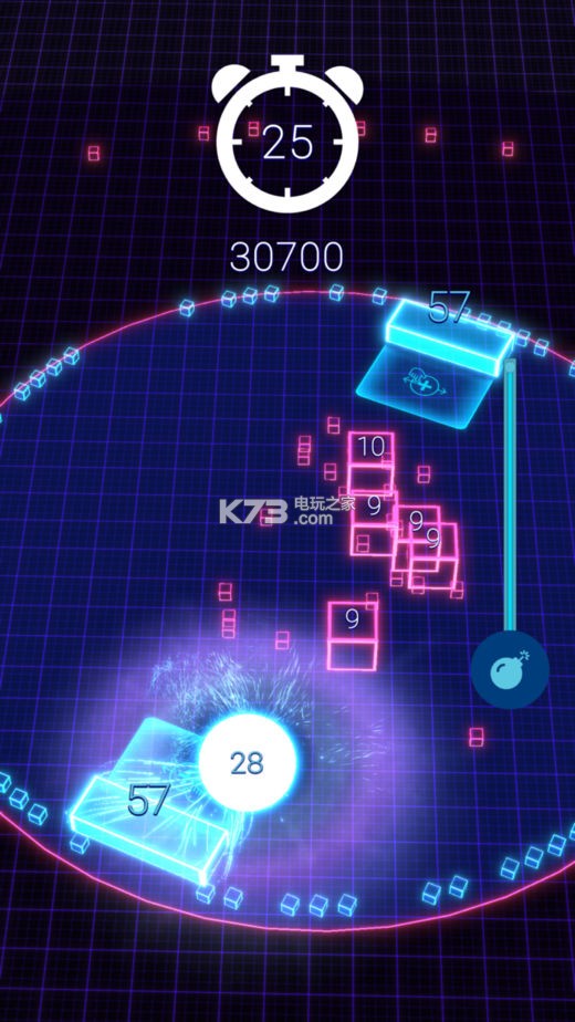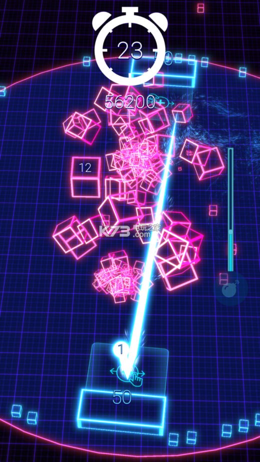 《Smash Rally》游戏画面炫酷玩法十分的简单,你需要做的就是滑动挡板,来不断的控制着球去击碎方块,来获取额外的时间和分数。