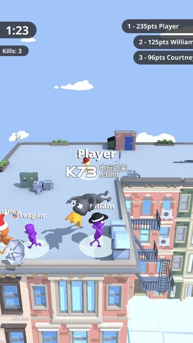 由PlayMotive制作开发的一款io乱斗类游戏,在游戏中玩家可以控制自己的小人在天台上来进行战斗,和全世界的玩家共同联机对抗,你获得的经验值越多你的角色就会越来越大,你的目标就是将你的对手都扔下天台,游戏中还有各种不同的造型可以解锁使用,打造属于自己的个性化角色吧。