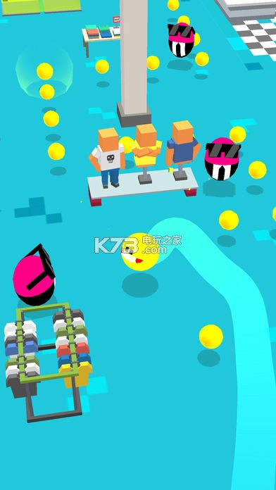 2、不断的吃掉更多物品,尽情的破坏,超多的小球让你吃掉就可以获得更高分数。