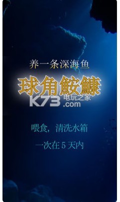 《球角鮟鱇》这是一款非常休闲的养成类手机游戏,游戏中你需要养深海鱼并且安静的看着水中的鱼儿游来游去,你只需要在规定的时间内喂食和鱼儿它就可以活下来,记得清理的你的鱼缸不然它可能会活不下去。