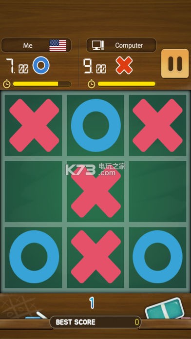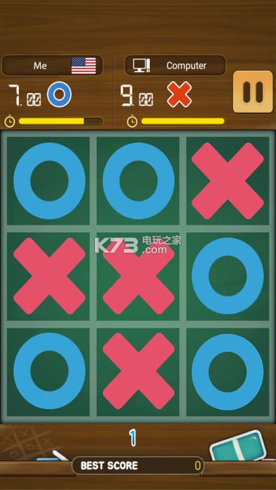 《井字棋冠军》这是一个关于棋艺对决的休闲游戏,玩家填充O或X在水平垂直或者对角,只有先比对手快几步才可以赢得游戏的胜利,非常考验你的逻辑思维能力,喜欢的来下载吧。