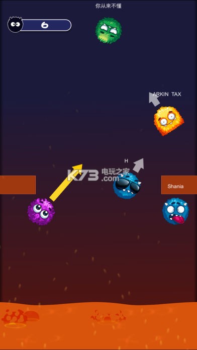 手指握住屏幕,改变方向,发挥其力量。当手指被释放时,它可以弹出并与其他玩家碰撞,直到它被顶入下面的热岩浆。