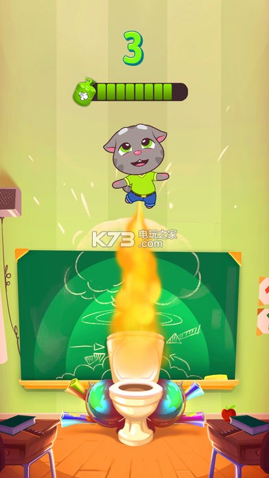《会说话的汤姆放屁(Talking Tom Farts)》比较恶搞的小游戏,每种食物都会让汤姆拥有不同的放屁效果,可以快速的升到天空中,飞的越来越高,得到更多的高分,收集硬币挑战高分。