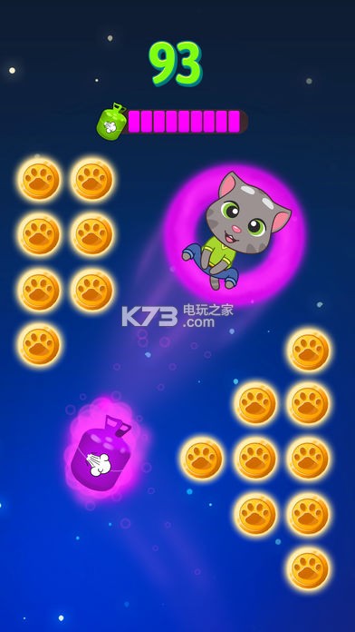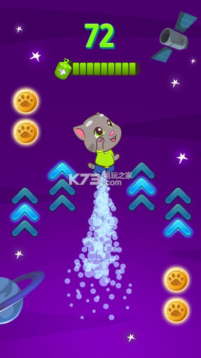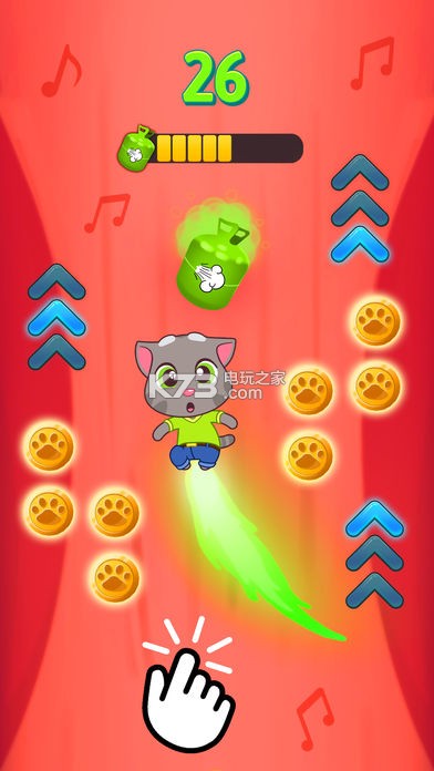 《Talking Tom Farts》你需要控制着放屁的汤姆猫在天空中飞行,小心的控制着,不让汤姆猫翻转过来,并收集上方的金币来解锁各种不同颜色的屁。