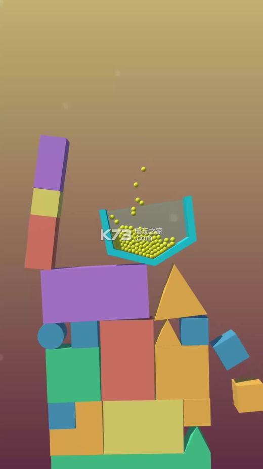 《不要泄漏(Don't Spill)》你可以自由的点击来消除块,使装着有100个球的容器从上方落下,你需要看准时机进行消除,使球不要洒落,并到达底部。