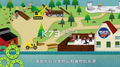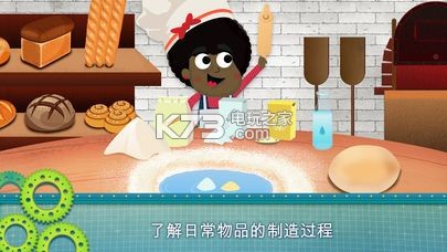 • 数十种教育游戏:清除棉花上的杂质来制作衣服,将轮子拧在滑板上,混合成分制作面包,研磨谷物制作面粉,将袋子提升到卡车中,通过滚筒印刷书籍...