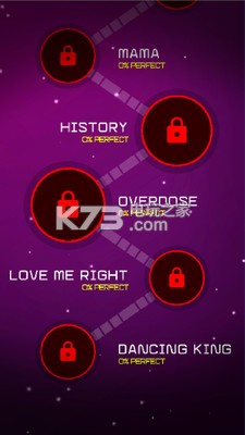 《exo舞蹈线》游戏里面包含了exo的全部音乐和歌曲,分为不同的关卡来让你挑战,你需要跟随每个关卡的音乐,然后来进行挑战完成闯关。控制一个小球在一个道路闯关,仙台哦也是非常的美丽的,像跳舞一样。