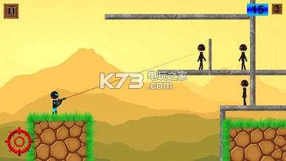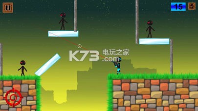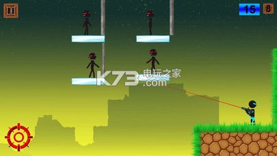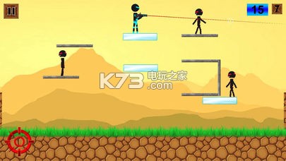 《楼下小黑手游》是火柴人风格的射击手游,游戏中有着多个火柴人分布在地图各处,玩家需要选定一个火柴人进行射击,将其他的火柴人全部干掉就可以获得胜利,游戏中的火柴人不能移动,但是可以利用光学物理来折射子弹!