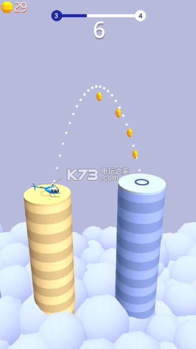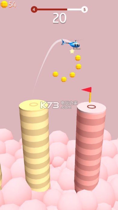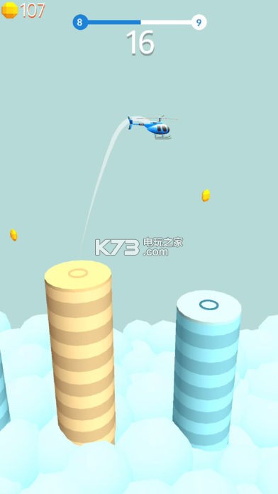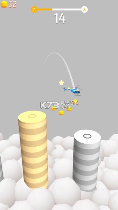 《跳频直升机(Hopping Copter)》从平台拖动瞄准下一平台控制直升机,靠玩家对距离的把握来进行操作,注意提前预判直升机的速度。