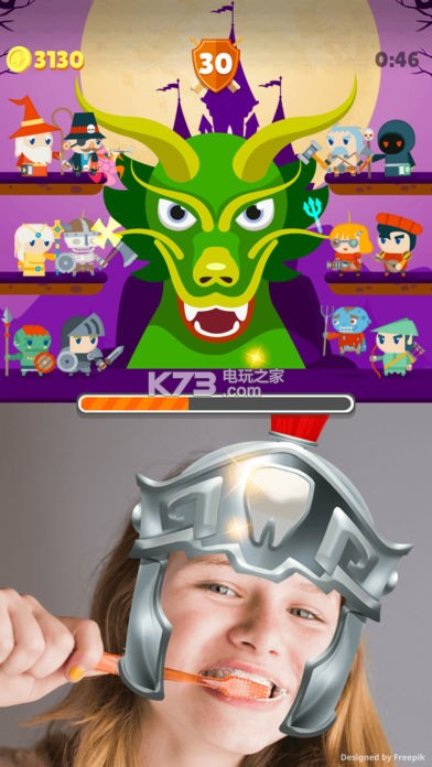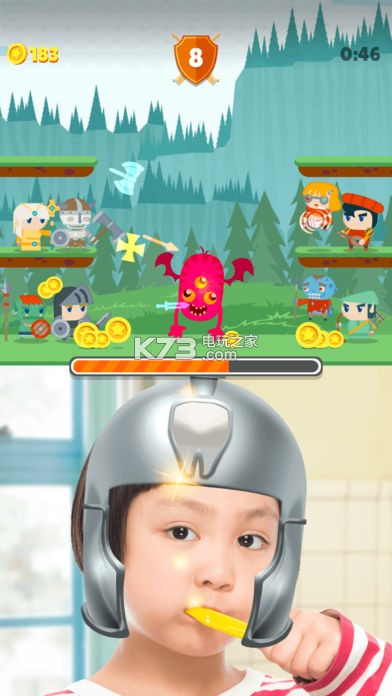 1、此游戏让孩子们爱上刷牙。 一旦您手握牙刷并且面对摄像头,就会化身为头戴钢铁战盔的英雄。