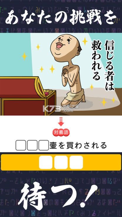 《思想的胜利(発想の勝利)》游戏非常简单,易上手,点击屏幕即可回答问题,将与画面以及词语相结合,找到题目的正确答案即可进入下一关,快来转动大脑,想出题目答案吧!