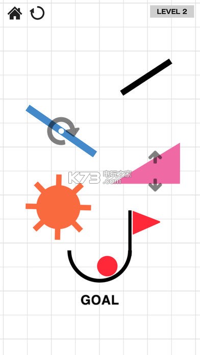 《Pitagora Ball(皮塔加拉球)》是款采用物理类玩法为主的闯关游戏,游戏的玩法十分的简单,拥有着多样的物理难题,玩家需要滑动手指来控制着木板进行倾斜,使球顺利的滚进下方的碗中。