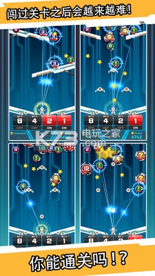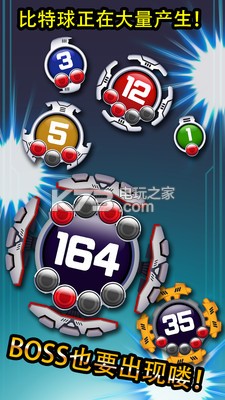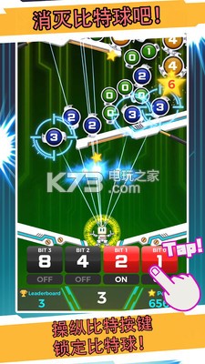 《消除比特球》这是一个和数学息息相关的消除游戏,每一个比特球上面都有数字,你要按按键上相应的数字才可以发射激光把比特丘射下来,要使用二进制比特来做出数字,用4比特生成16种数击落比特球。