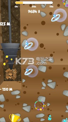 《摘金子(Pick The Gold)》游戏中玩家将自由的选择地方来控制钻头向下探索,挖掘各种金币和钻石,使自己变的富有,并不断升级你的钻头,让它能更加的深入地底。