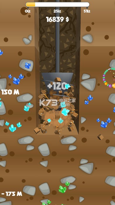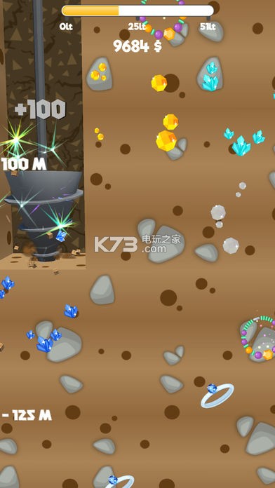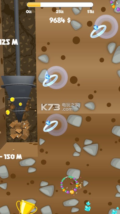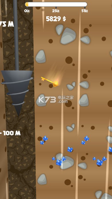 《Pick The Gold(拾金子)》游戏的玩法十分的魔性,玩家需要控制着钻头在地底不断的挖掘,获取各种有价值的东西,来不断积累你的财富,并可以对钻头进行升级。