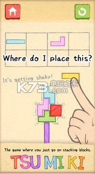 《tsumiki》是一款很新趣的平衡游戏,这个游戏主要是以以上面掉落的一些积木进行堆叠,然后还要保持这些积木的整体的平衡,每次都会提供一些积木给你来选择,你来进行预测哪一些可以继续保持你的积木平衡.然后让它掉下来.