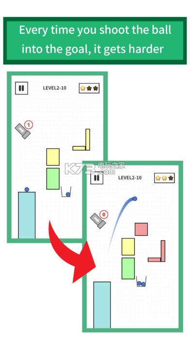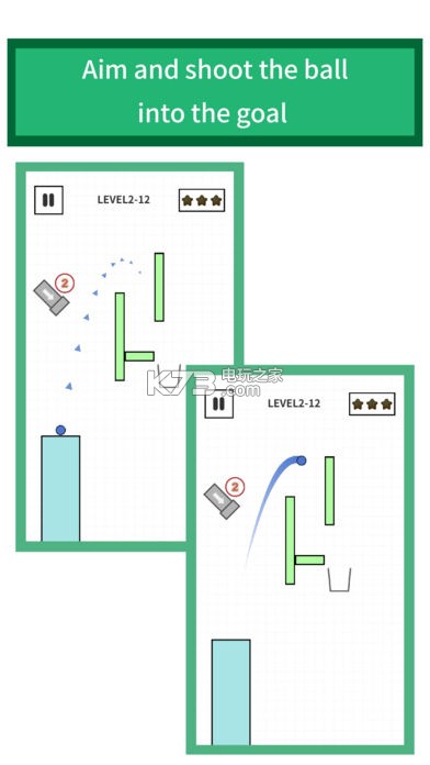 你的工作是瞄准并射入球门。你可以得到3颗星,如果你射击3球进入球门,尽管每次你把球射入球门,它就会变得更难。