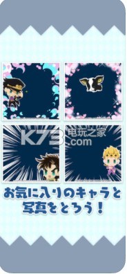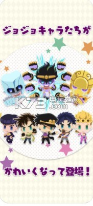 本作改编自经典漫画《JOJO 的奇妙冒险》,玩法为三消益智类型,游戏中经典的角色都将 SD 造型登场,玩家不仅可操作各个 JOJO 角色进行战斗,还可以打造属于自己的 JOJO 公寓。