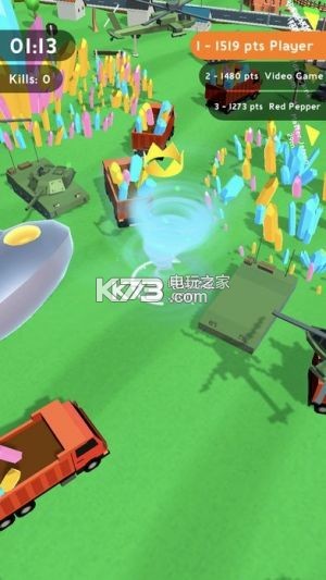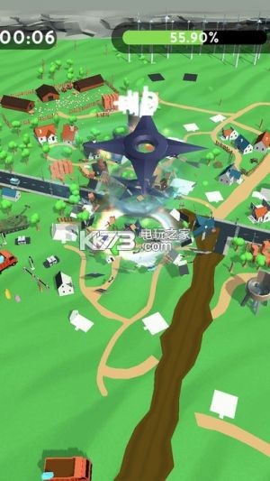 一款卡通风格的趣味休闲游戏,游戏中玩家将操控一个小的的台风,你可以通过操控你的台风在乡村城市里自由的进行破坏,你都可以通过不断的破坏来壮大自己,随着风力越来越大,你可以吹起来的东西也会越来越大,把整栋房子都吸到天上去吧,趣味轻松的玩法非常的简单容易上手,享受破坏的快感