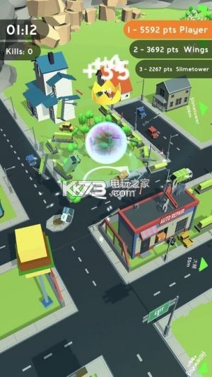 3、不断的成长就可以卷走更大的东西,和其他玩家同台竞技,你可以干掉比你体型小的玩家