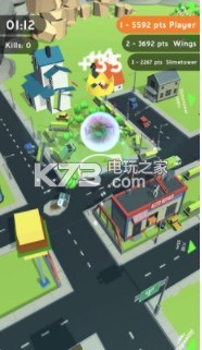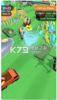 3、不断的成长就可以卷走更大的东西,和其他玩家同台竞技,你可以干掉比你体型小的玩家