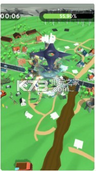 1、精致卡通3D游戏画面,游戏完美的重现了乡村里的各种场景,操控你的台风尽情的破坏