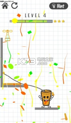 2、在杯子上有着几道虚线,进入杯子中的水到达一天虚线会获得一颗星星,三星为完美通关哦;